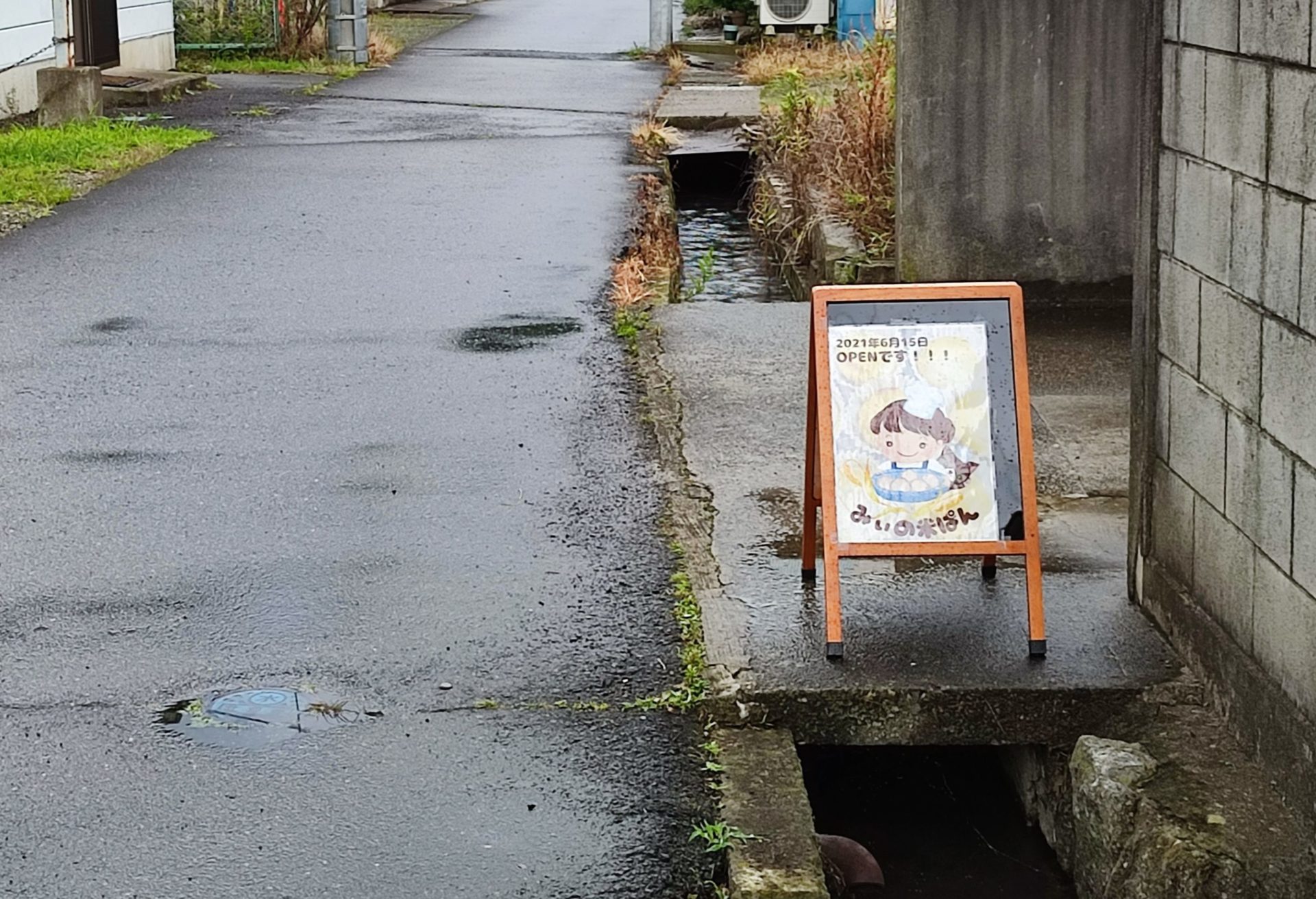 てくてく歩いていくと、住宅街の中に看板を発見。看板のデザインがかわいい(^^)